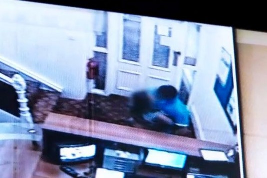 Το βίντεο δείχνει τη στιγμή που ο 26χρονος οδηγεί σε δωμάτιο ξενοδοχείου το 13χρονο θύμα του. Το νεαρό κορίτσι, όπως αποδείχθηκε είχε υποστεί κατά καιρούς βιασμό από πέντε άντρες, όλοι γνωστοί μεταξύ τους.